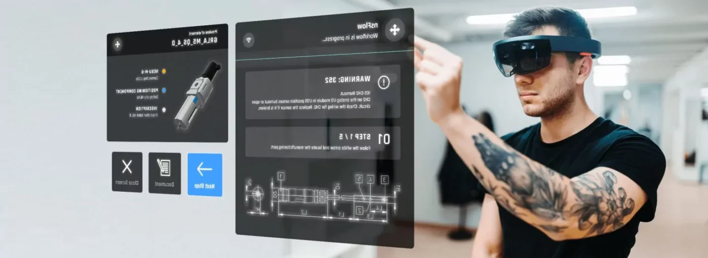 Instead of immersing the employee in a virtual world, the AR system overlays digital guidance onto the real-world view through smart glasses. Without obstructing vision or causing distraction, semi-transparent prompts appear—text, graphics, instructional videos, or arrows showing what to do and where to go. Operators see their actual production floor while receiving real-time guidance.