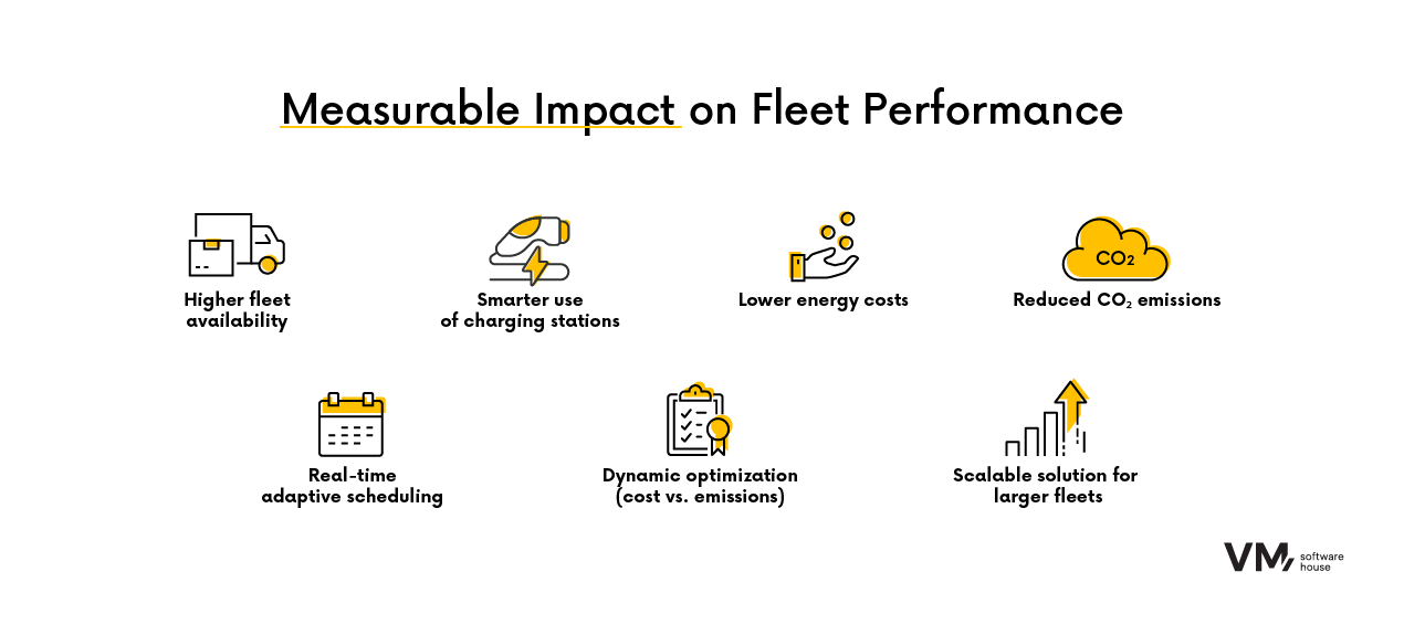 - Reduced vehicle downtime caused by suboptimal charging schedules, resulting in improved fleet availability and a higher number of completed deliveries
