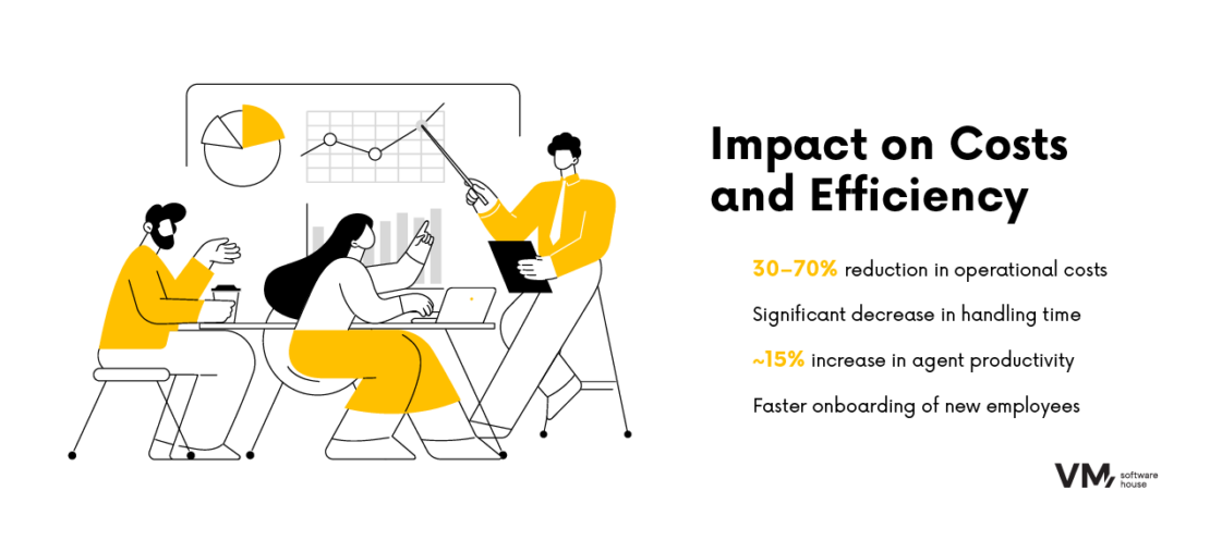 From a business perspective, implementing AI in customer support delivers measurable results. Operating costs can drop by up to 70%, and ticket handling times can be reduced by several dozen percent. These values are confirmed both by global reports and real-world company experiences.